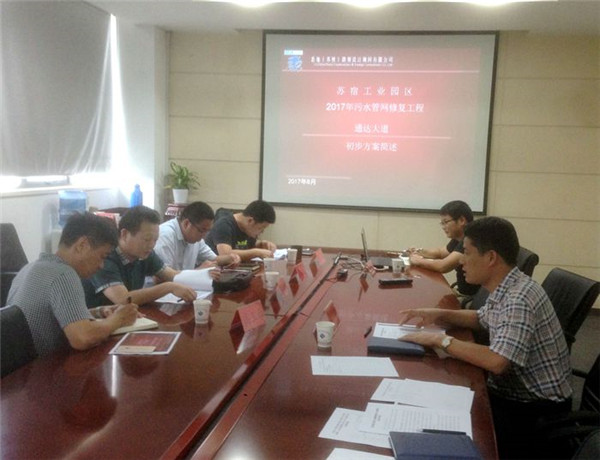 根據園區(qū)污水規(guī)劃修編意見和2017年建設計劃,開發(fā)公司啟動商住區(qū)通達大道污水維修項目。為確保維修方案安全可靠,近日,開發(fā)公司組織召開通達大道污水管道改造工程方案評審會,特邀設計、建設、規(guī)劃和施工四個方面共五名專家,并邀請園區(qū)規(guī)劃建設局相關處室人員參加會議。